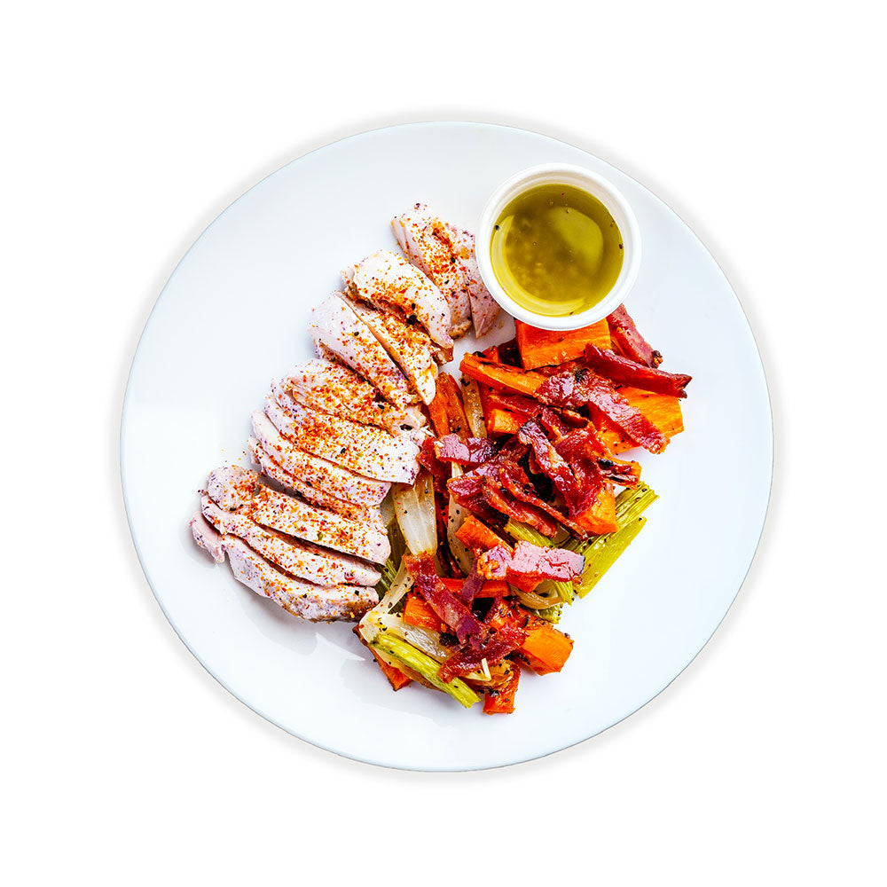 Chicken Thighs with Celery, Carrots & Turkey Bacon