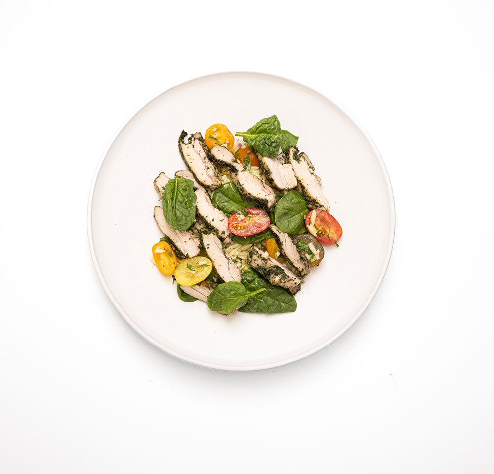 Herb Roasted Chicken Thighs with Orzo & Garden Fresh Veggies