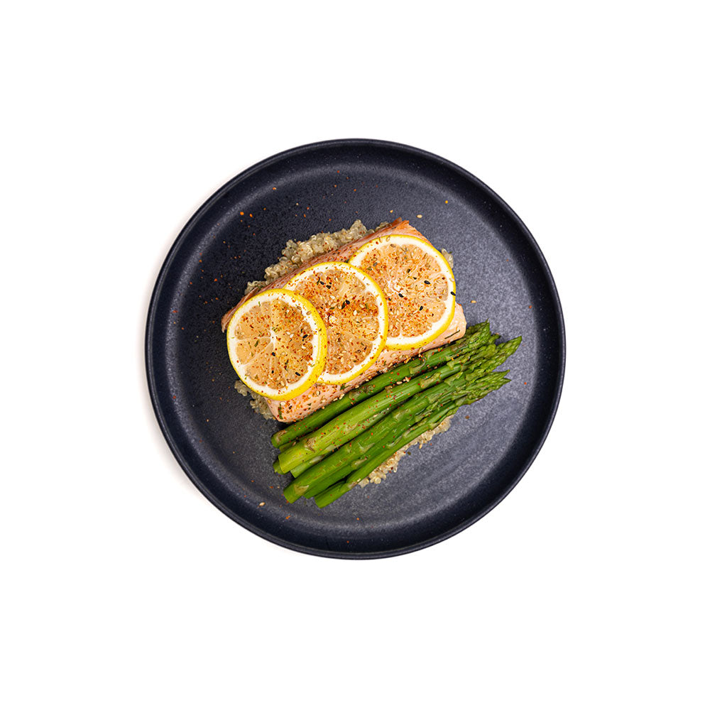 Garlic Lemon-Baked Salmon with Quinoa and Steamed Asparagus