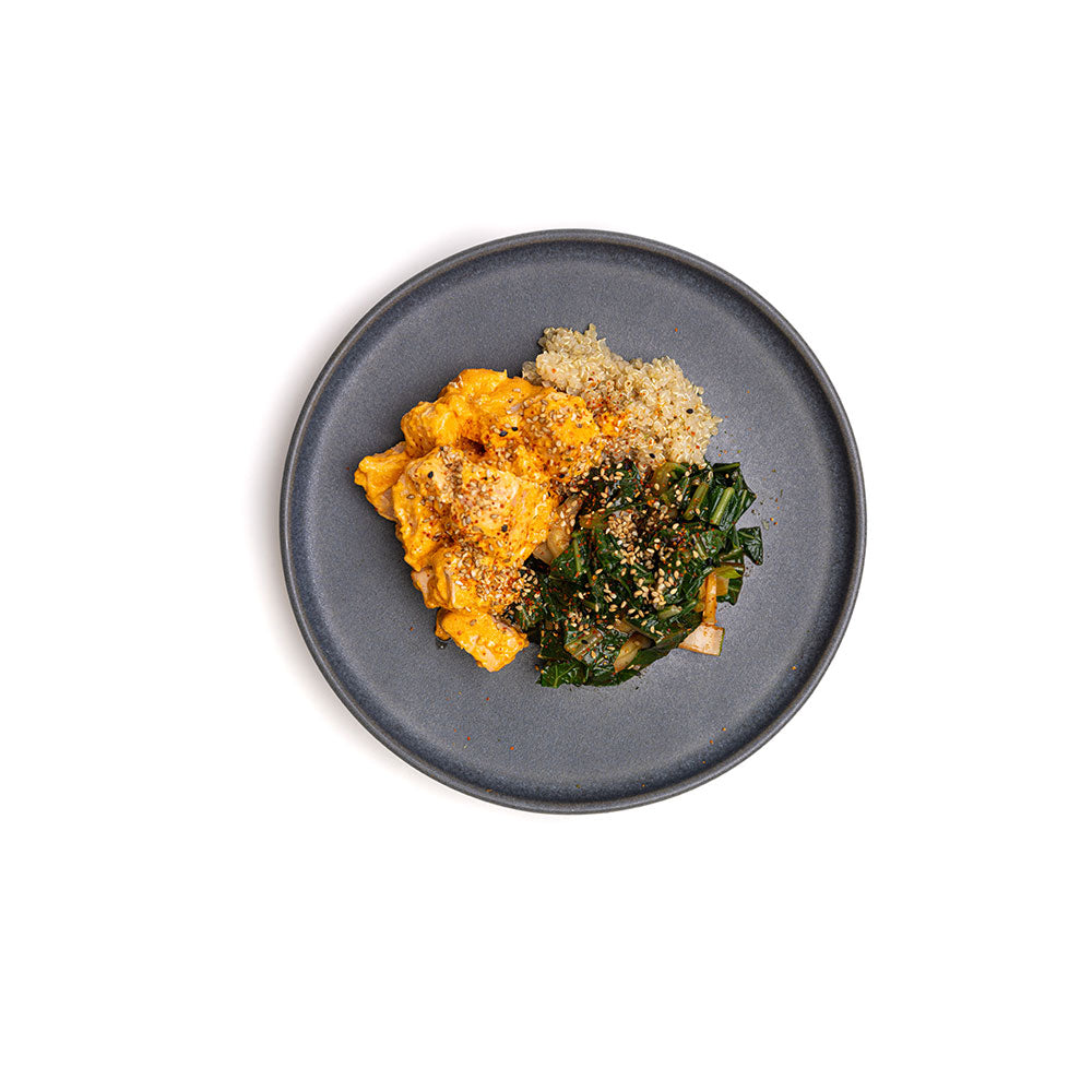 Spicy Salmon Sushi Bake with Quinoa & Market Greens