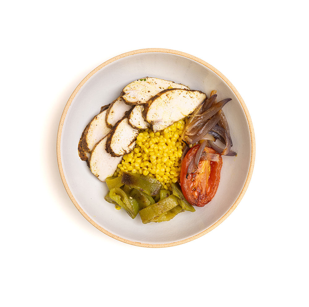 Spiced Chicken Shawarma with Couscous & Charred Anaheim Peppers